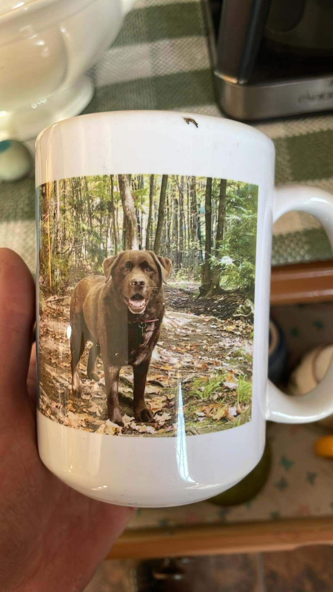Sauf une. Une tasse m’est précieuse. Celle que j’ai faite faire aux décès de ma Yoshie. Ma Didi. Mon chien-brun. L’amour de ma vie.