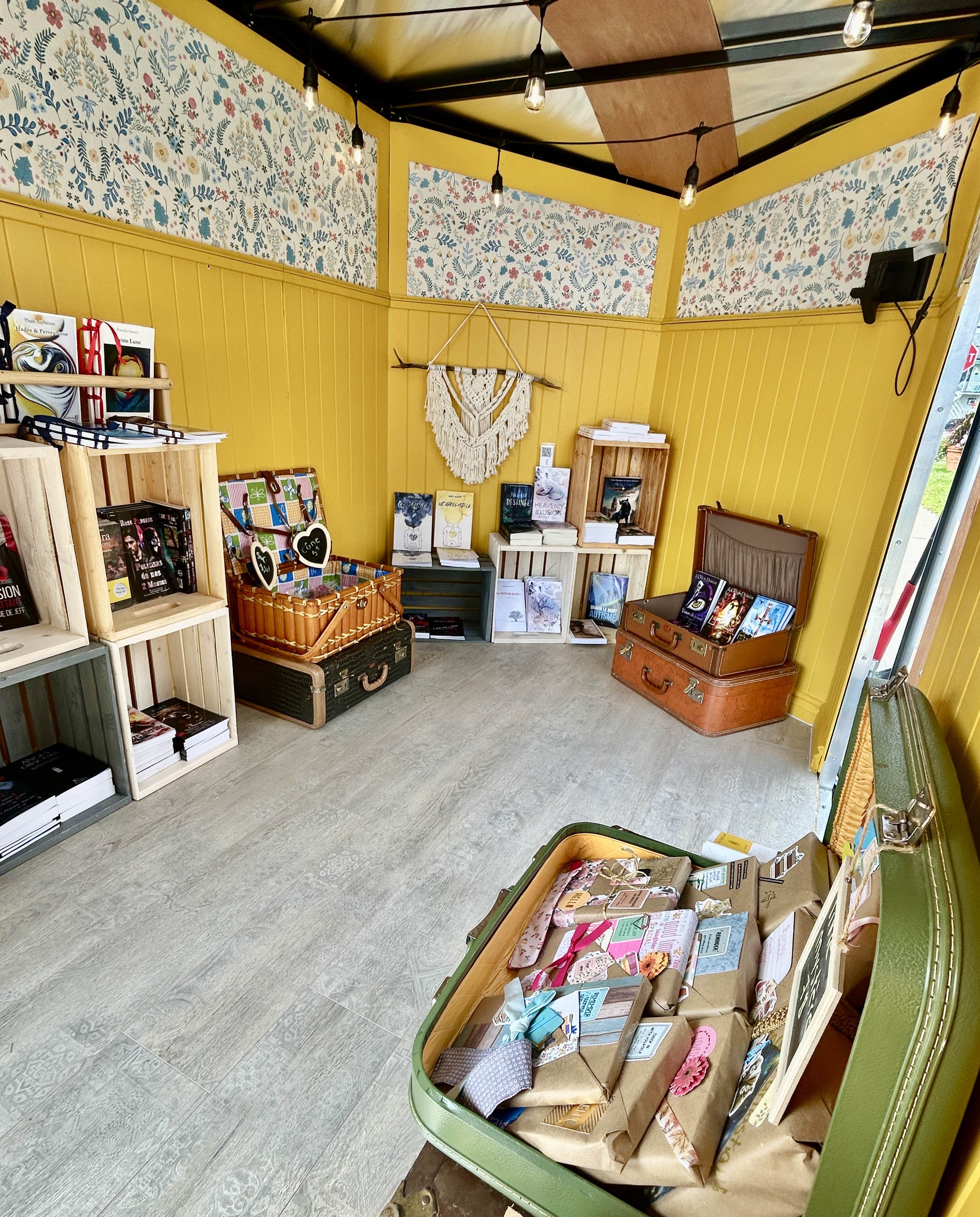 Notre mission est de créer un lieu de pause et de découverte au cœur de vos festivités : un coin où les visiteurs peuvent se détendre, s’évader par la lecture, et repartir avec un souvenir différent.